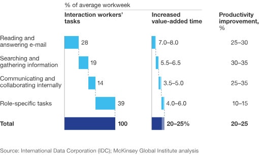However, when files are scattered throughout hard drives, email inboxes, and older file-sharing tools, both speed and consistency suffer. Delays occur when a team member has to create a file he or she did not know existed. According to McKinsey, the average knowledge worker spends approximately 19% of his/her time merely looking for information.